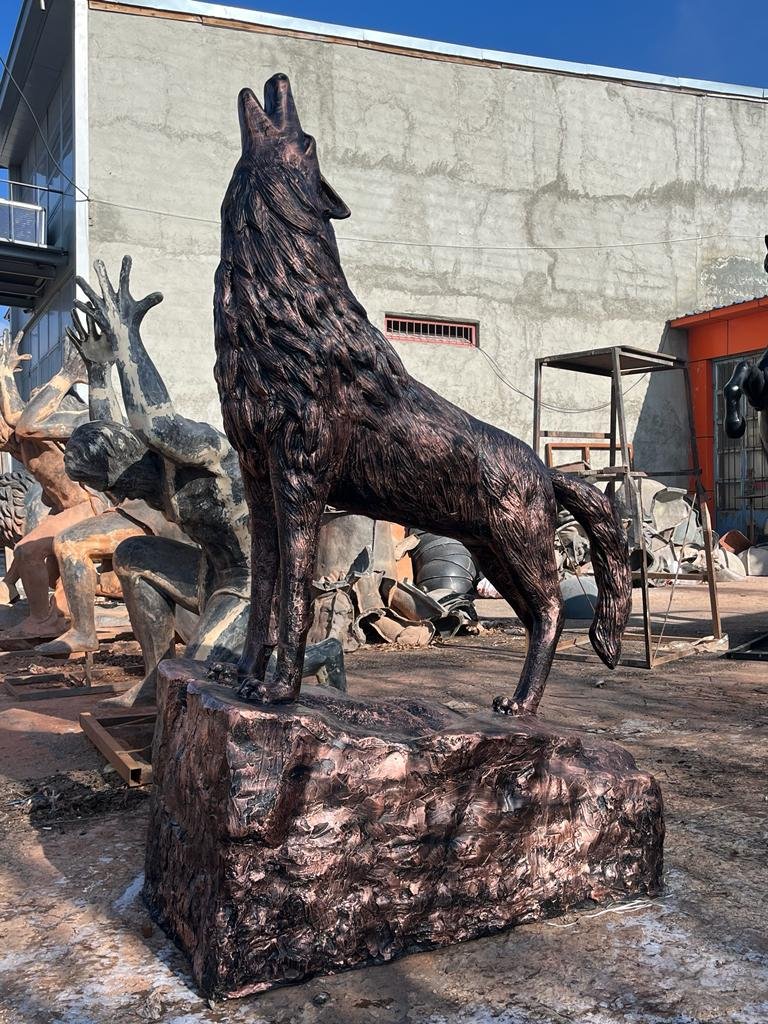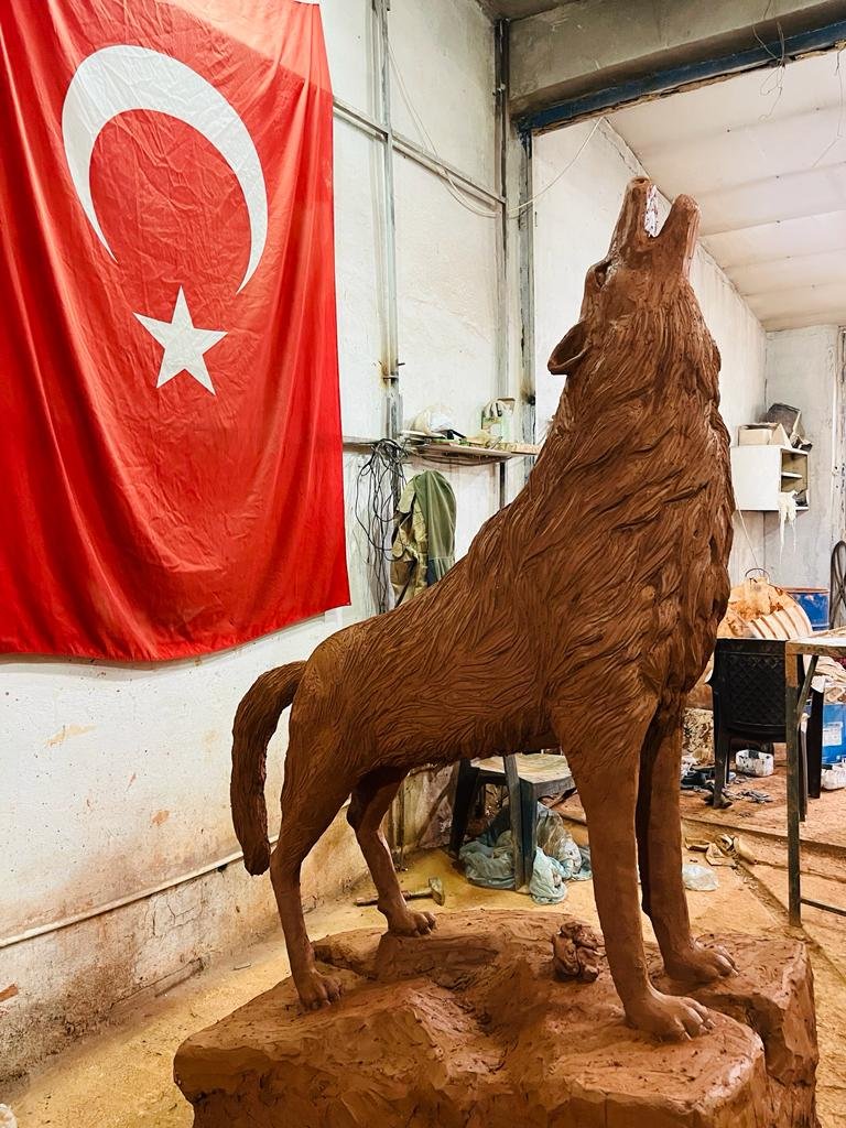 Uluyan Kurt Heykeli isimli heykel tasarımımız 2.10x1.30x65 ölçülerinde heykel atölyemizde üretilmiştir. Malzeme olarak fiber döküm kullanılmıştır.